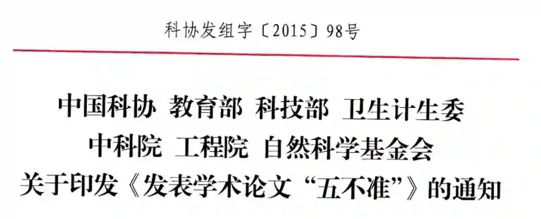 早在 2015 年,中国科协、教育部等和自然科学基金会就联合印发了《发表学术论文「五不准」》,包括不准由「第三方」代写论文,不准由「第三方」代投论文,不准由「第三方」对论文内容进行修改,不准提供虚假同行评审人信息,不准违反论文署名规范。