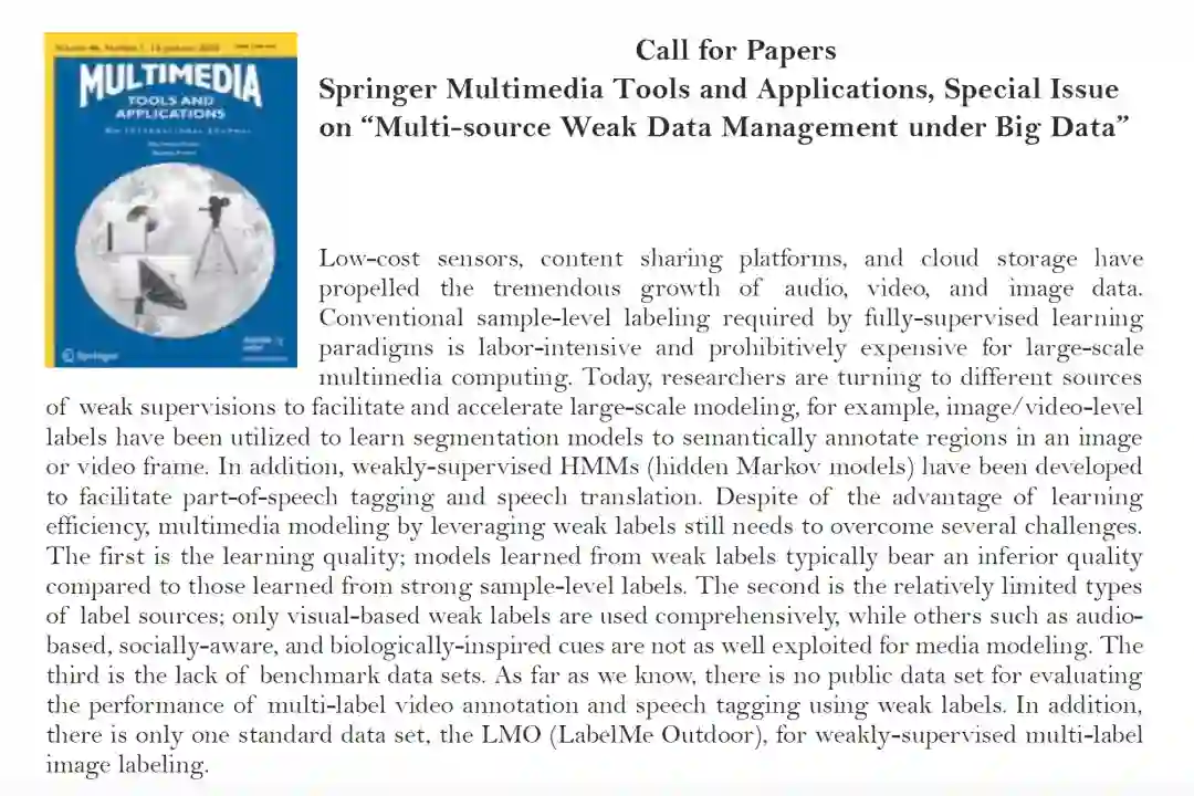 多媒体工具和应用程序(MTA)期刊出版关于多媒体开发和系统支持工具的原始研究文章,以及多媒体应用程序的案例研究。它还包括实验和调查文章。这本杂志是为从事多媒体系统研究、设计和应用的学者、实践者、科学家和工程师准备的。所有论文都经过同行评审。 官网地址:
