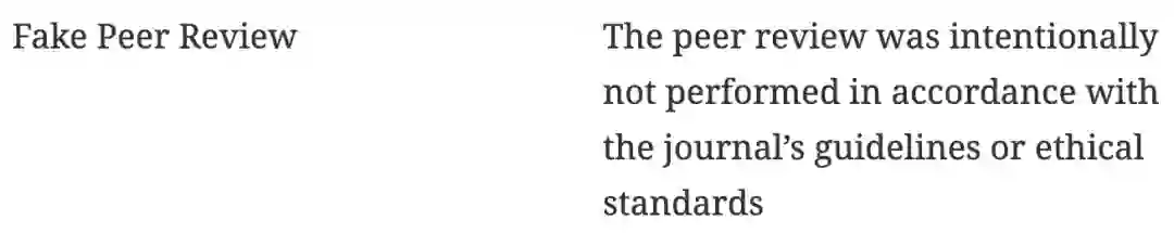 著名科研打假网站 RetractionWatch 中列出的撤稿原因中,伪造同行评议便榜上有名,指的是「故意不按照期刊指南或道德标准进行同行评审的行为」。
