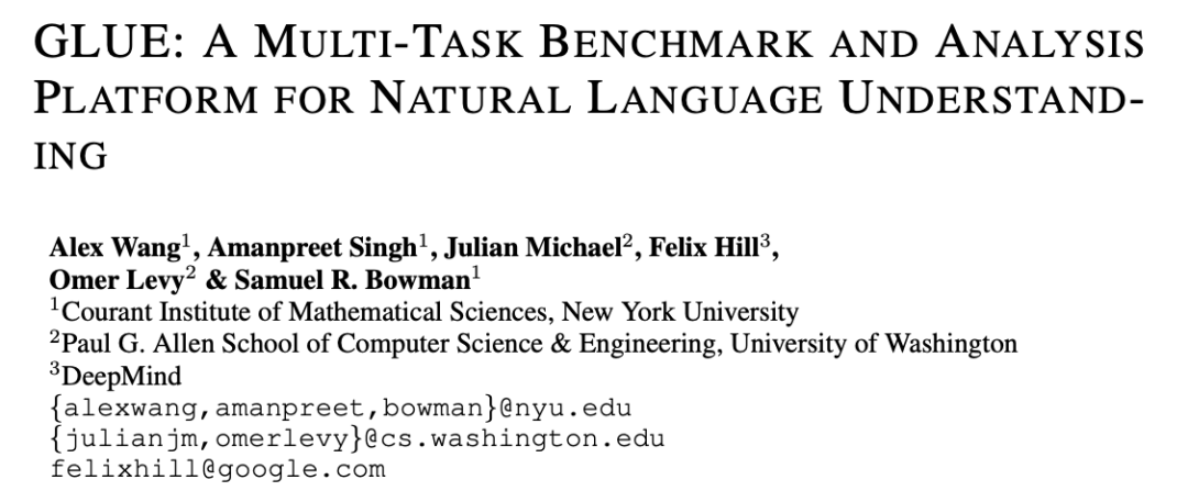 论文地址:https://arxiv.org/pdf/1804.07461v3.pdf