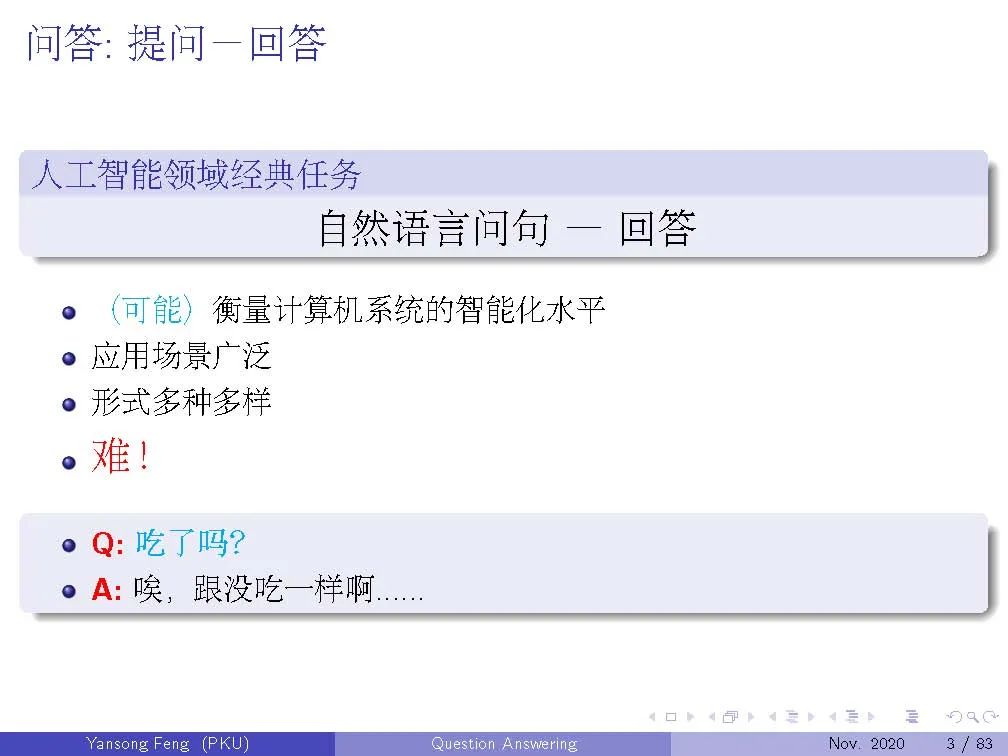 冯岩松,信息科学博士,北京大学王选计算机研究所副教授。主要研究方向包括自然语言处理、信息抽取、智能问答以及语义分析等;此前曾多次在国内外知识问答评测中取得第一名;相关工作已发表在 ACL、NAACL、EMNLP、TPAMI、AIJ、IJCAI、AAAI等自然语言处理领域主流期刊与会议上。作为项目负责人或课题骨干已承担多项国家自然科学基金及科技部重点研发计划、 863 计划项目。分别在 2014、2015 年获得 IBM Faculty Award,及 2016 年 IBM Shared University Research Award。