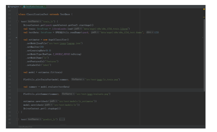 定义一个Angel模型并以Spark的参数设置方式为其设置参数。在这个示例中,算法是一个通过JSON定义的计算图。