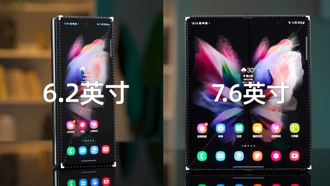 从外观上看,跟上一代相比,设计 ID 的变化不大,尤其是尺寸,同样的 6.2 英寸外屏和 7.6 英寸内屏组合。还有同样稳重内敛的雾面磨砂材质,能明显看出区别的也就是摄像头模组以及全新的配色。说的简单点,上一代是金色和墨色,这一代就是黑色、银色和一抹似曾相识的绿,整体还是一如既往的商务。