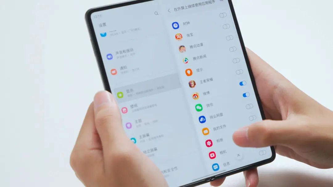 还有值得一提的一点,就是之前在内屏打开的 App,合上手机之后,就关闭了,你如果想在外屏使用,需要重新打开,这次就给你留了个开关,你可以选择某些你常用的 App,在你合上时候,直接在外屏显示,比如说微信微博之类的,这个在很多应用场景下也都是很实用的。
