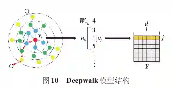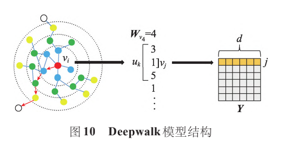 基于随机游走的静态图嵌入模型通过随机游走获得训练语料库,然后将语料库集成到 Skip-Gram 获得节点的低维嵌入表示。Deepwalk使用随机游走对节点进行采样,生成节点序列,再通过 Skip-Gram 最大化节点序列中窗口范围内节点之间的共现概率。