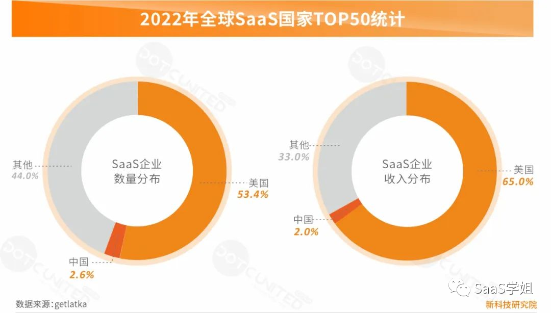 而一份今年的统计说明:美国 SaaS 公司收入全球占比超 60%,中美 SaaS 企业 TOP10 总市值相差 17 倍。