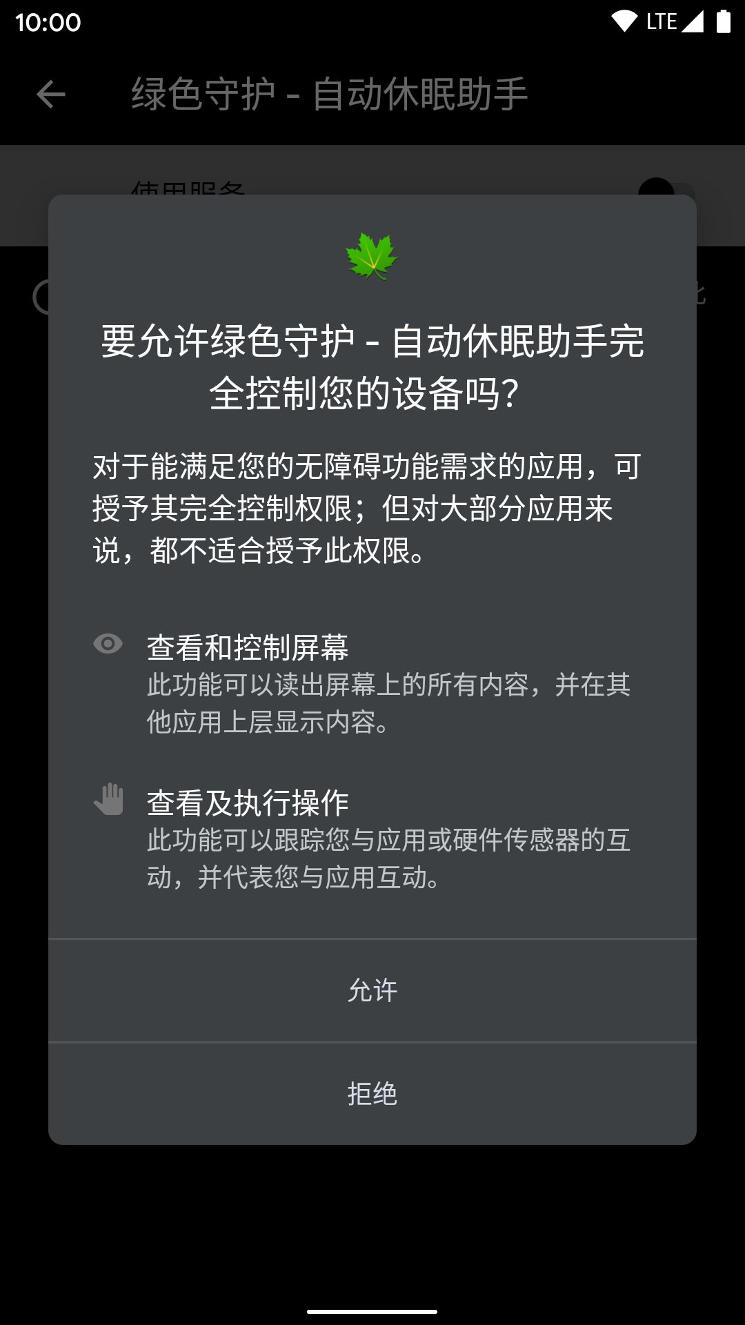 绿色守护会自动避免休眠正在前台工作的应用,这个功能需要给予「允许查看使用情况」权限才能使用。