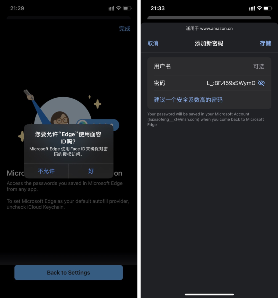 实际使用时,新版 Edge 也可以像其它专业密码管理工具那样,在第三方应用中匹配已保存的登录信息提供自动填充建议了,填充前还支持调用面容 ID、PIN 码等方式进行身份认证。