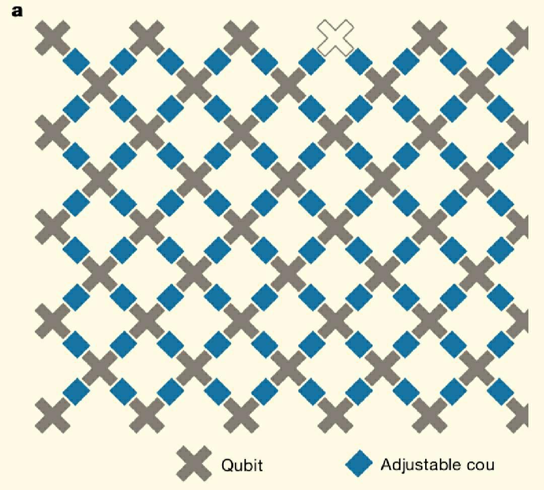 通俗的讲就是量子计算机碾压传统超算的算力。量子计算的速度之源其实是量子比特,以谷歌本次所讲的量子芯片为例,其内部构造如下: