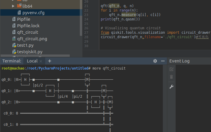 目前IBM推出的qiskit是非常棒的Python量子模拟器,不过最近新注册用户可能有些困难。如果各位读者之前有IBM Q的帐号可以到他们在线的Notebookhttps://quantum-computing.ibm.com/jupyter环境去感受一直量子傅里叶变换,当然读者如果有Python3.6和C++的编程环境,直接使用pip install qiskit命令即可完成安装, 具体量子傅氏变换的代码及注释整理如下: