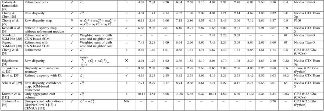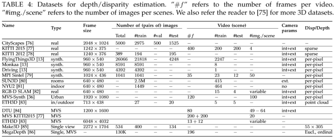 TABLE 4为双目深度估计数据集。另外多视的算法测视需要人工合成数据集。