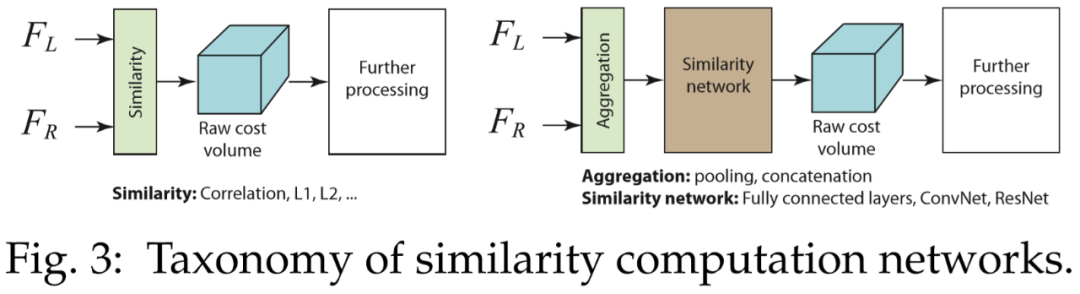 使用相似度-学习网络,先集成不同的网络生成的特征向量,再通过全连接网络或卷积网络输出匹配cost,最后由于有多个像对,产生多个cost,所以对诸多cost进行集成(如最大池化),生成最终匹配的cost 。