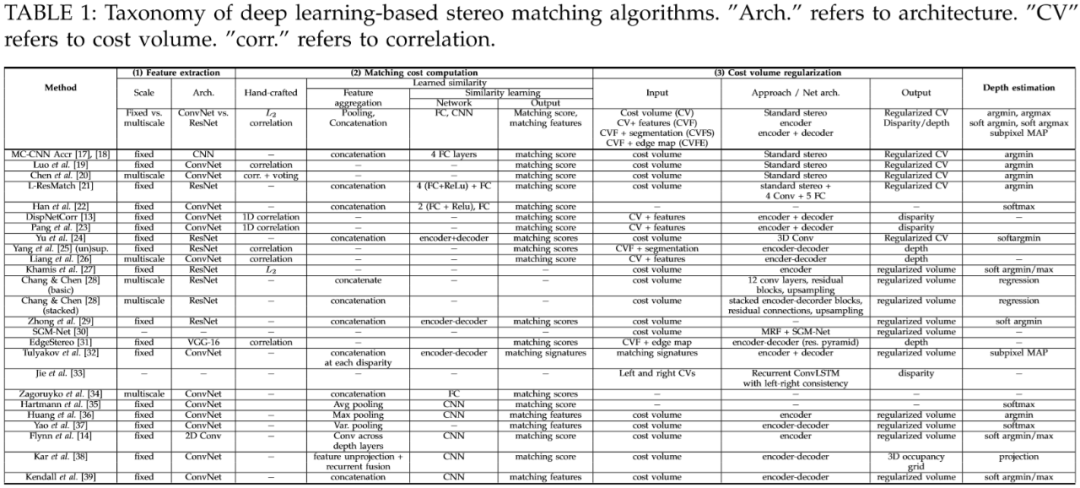 双像匹配方法:用深度学习完成特征提取、特征匹配、视差(深度)估计、视差(深度)修正。