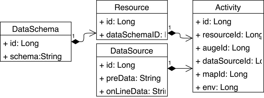 Activity实体是DataSource和Resource的关系实体,同时包括活动的人群、起止时间等属性。由于DataSource和Resource实体线上和线下环境中主键ID都不会改变,那么意味着Activity可以把线下的配置直接同步到线上,在同步过程中需要做的是如果线上没有配置就插入一条如果存在就更新。那么怎么映射Activity线下和线上的关系呢,在Activity里面引入了mapId字段,线下的Activity实体在mapId中存储线上Activity实体的主键Id,利用这种映射关系实现了线下和线上的映射。