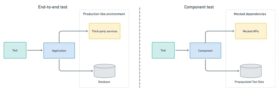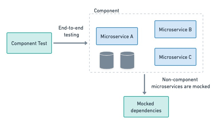 组件测试执行一组微服务的端到端测试。超出组件范围的服务都是模拟的。