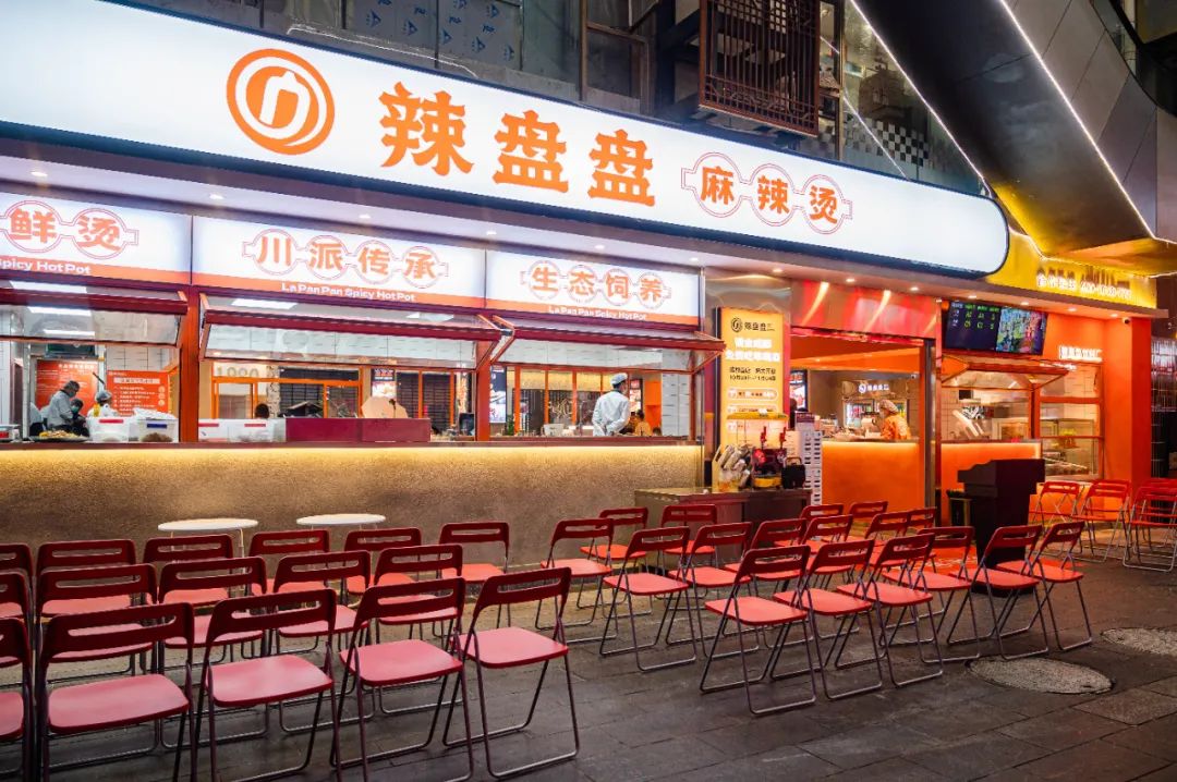 辣盘盘首家门店在2021年开出,针对写字楼、商场、社区等场景,辣盘盘分别推出了主力店、档口店等不同面积门店形态。据悉,其中20平米档口店日销可达8000元。