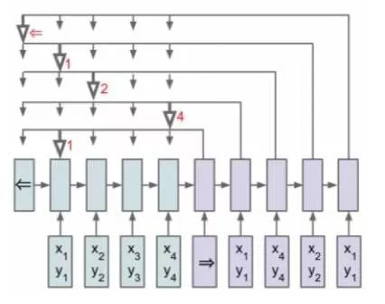 在如图1这样的传统seq2seq模型中,我们使用了一个固定大小的softmax分布来计算,而这样的模型架构并不能解决output dictionary大小不能确定的组合问题。而在Ptr-Net中我们则可以使用如图2的attention机制来解决这个问题