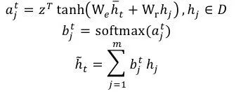 其中ej和di分别表示encoder第j步和decoder第i步的隐层。而v和W是可以学习的参数。而如图7所示中的sentence encoder部分则可以通过CNN, RNN等各种方法来完成。