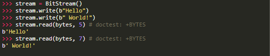 压缩编码(例如霍夫曼编码)并不总是以全部字节数来表示数据。由于位流支持位而不仅仅是字节,所以代码可以使用相同的API来实现。比如一个自然数的序列的一元编码只需要几行。
