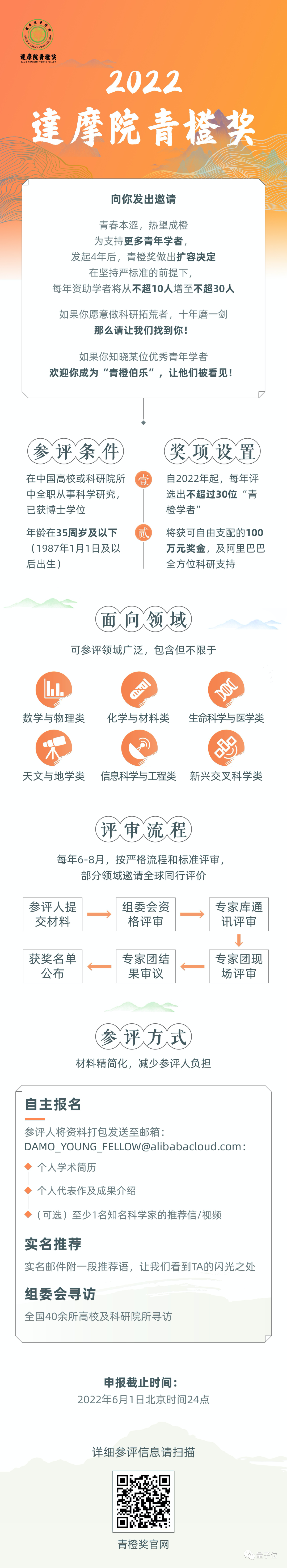 青橙奖由阿里达摩院2018年发起,如今已举办了四届,累计资助近40名年轻学者。
