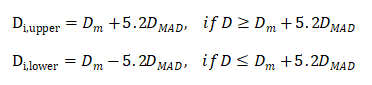 其中Di表示第i个观察值,Dm表示每一个特征变量的中位数。Dmad为每一个观察值与中位数的偏离量的中位数。