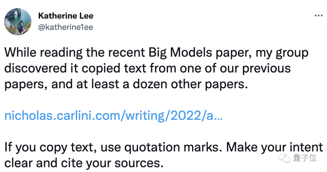 被抄袭的作者之一、谷歌大脑研究员Katherine Lee给出建议: