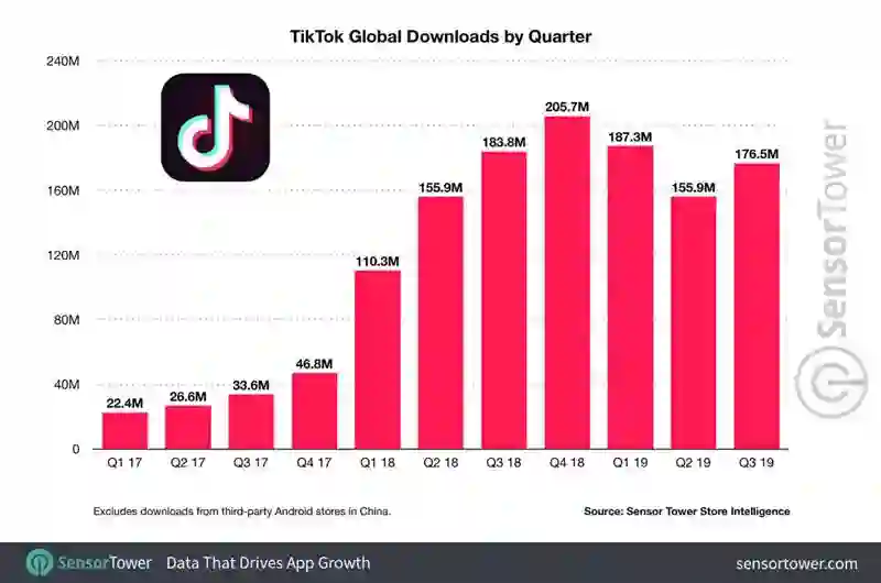 此后,虽然TikTok在海外分别受到了不同国家的政策制裁(FTC控告TikTok非法收集儿童信息等),导致其在2019年前两个季度呈现下滑趋势;