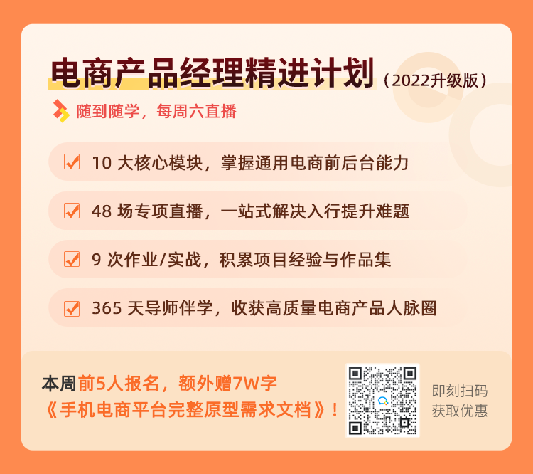 起点课堂联合2位长期深耕电商领域的产品老司机,帮助0-3岁电商产品经理,系统构建大厂规范的电商产品能力体系,成为有思考、有策略的实干型电商产品经理!