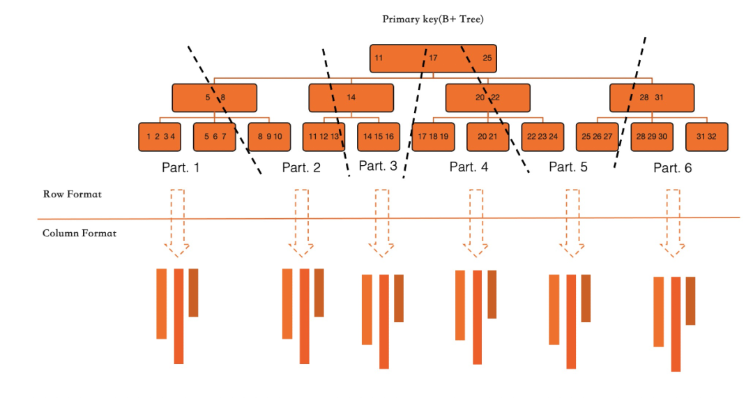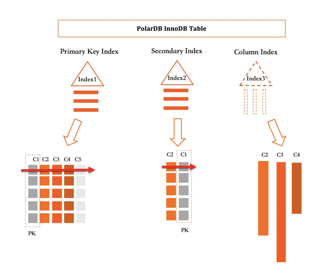 PolarDB 采用了和Oracle/Sql Server等商用数据库类似的行列混合存储技术,我们称之为In-Memory Column Index: