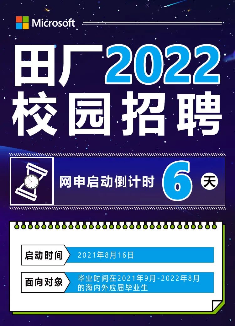 田厂校招开启倒计时|距离微软2022秋招正式启动还有6天!