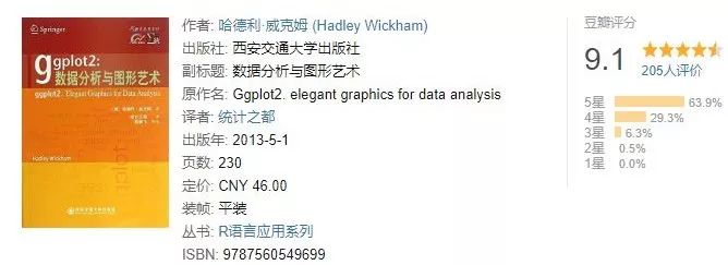 ggplot2 是最优秀的数据分析可视化工具之一,这本书系统地讲解了 ggplot2 的基本原理和具体操作,书中有大量的例子,也可以下载源代码。更建议直接学习英文版的教材(如果英文过关的话)。
