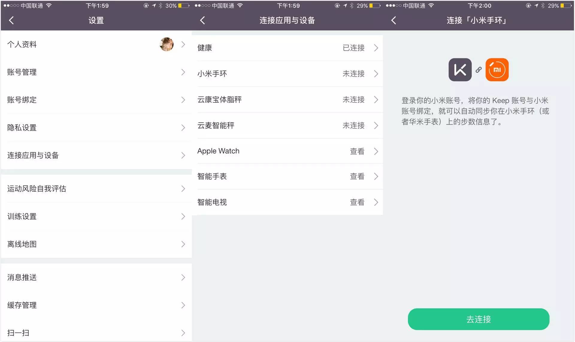 *Keep app中已打通与智能硬件的连接,方便用户全方位记录自己的运动数据。