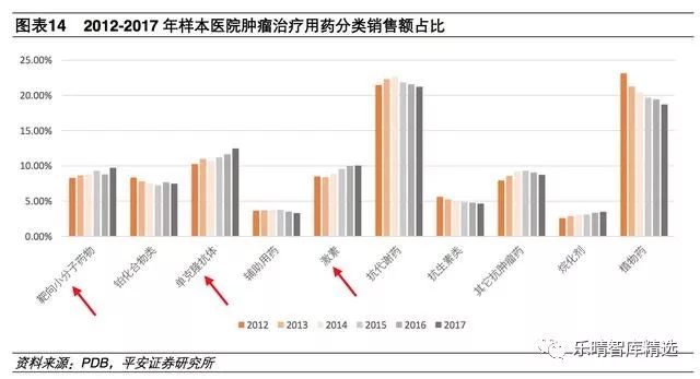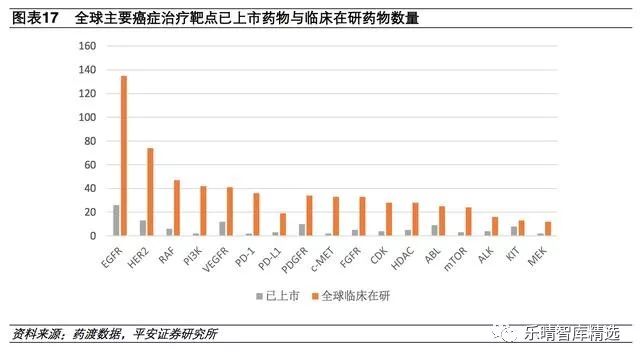 2015年批准的14个抗肿瘤药物中,靶向药物达到12个,2016、2017年批准的全部都是靶向药物。