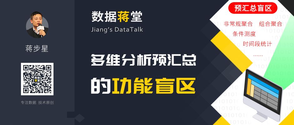 多维分析预汇总方案的功能盲区,不仅仅在于我们常说的明细数据,而还有很多汇总信息也无法解决。采用预汇总用空间换时间,确实能一定程度地提高性能,但只能解决一小部分最简单的需求,而且还面临存储量巨大的问题。把多维分析的效果寄希望于预汇总方案是很不靠谱的。要做好多维分析,硬遍历的功夫是基本的,即使有了预汇总数据,也要在优秀的硬遍历能力辅助下才能发挥更大的作用。