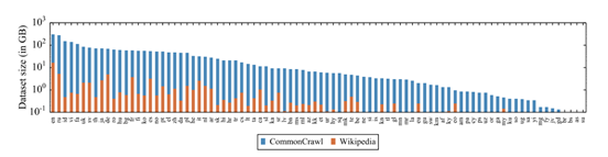 每种语言的常见爬虫数据集的容量增加超过了维基百科的(来自XLM-RoBERTa论文)