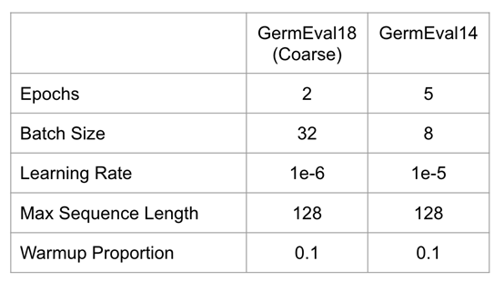 评估结果。这里是GermEval18 的排行榜,这里是Flair报告的分数