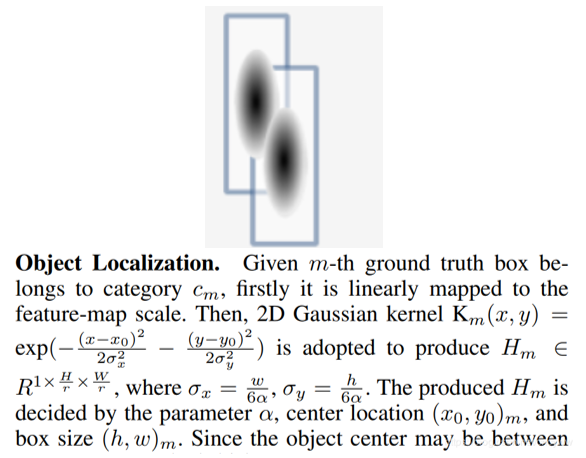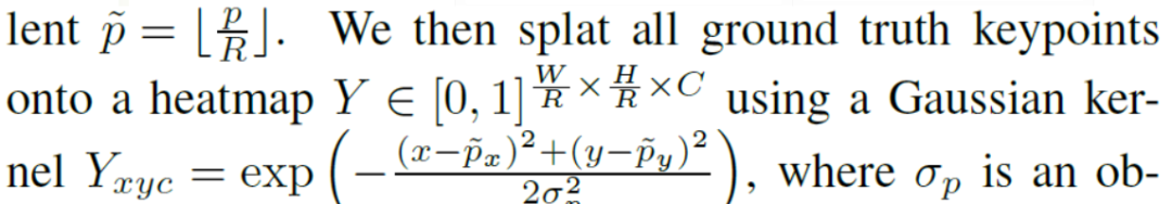 这部分类似于 centernet,中心点的标签是依据点到预设网格点的归一化后的 offset 确定的,而 heatmap 则是采用的: