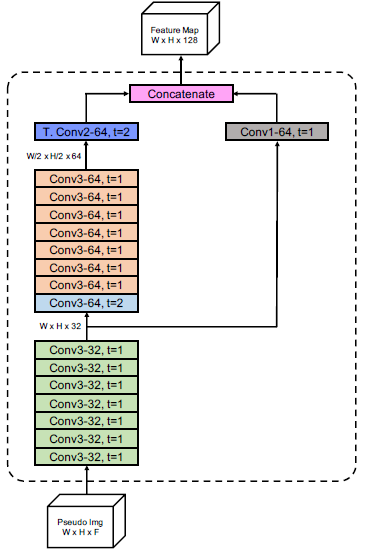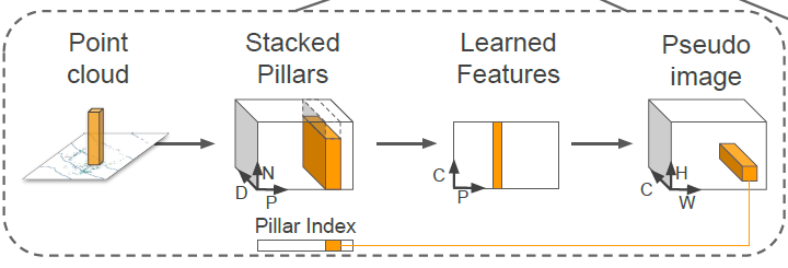 可以看到,HorizonLiDAR3D 检测框架跟 AFDet 基本一样,区别就在于,这个是用来参赛的,所以会增加很多 tricks 和 ensemble。其中的点云编码部分跟之前一样,还是编码成了 pseudo image 形式: