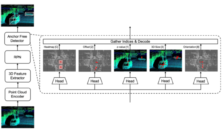 AFDet 是地平线这次 3D 检测竞赛的 baseline 算法,在 CVPR2020 Workshop 上报告过,从算法流程图可以知道的 AFDet 由点云编码器、骨干网络和检测器三部分构成。其中点云编码器部分采用的是 CVPR2019 的一篇论文中提出的 PointPillars 算法: