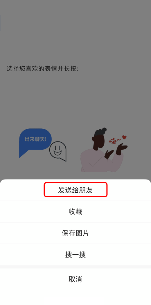 在弹出的选项中选择 "发送给朋友",选择任意聊天对象