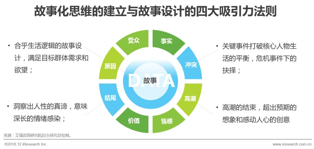 所有的商业战略目标都是为了打动人心,而故事是最能打动人心的一种手段。人类对故事的情有独钟,需要追溯到七万年前人类从动物里面的脱颖而出的原因,是因为语言的诞生,然后是八卦进而衍生出的一个一个小故事,人类一直喜欢故事,是故事让人类的生活充满了意义。到了大数据时代,高密度的数据信息诞生,依然可以借助故事对人类天然的吸引力,建立一套故事化思维。相比于故事,数据仅仅罗列发生的事件,用数据和相关指标解释事实,故事却能将事实的前因后果有效的串起来,将事件链接一段一段的因果关系。《故事经济学》中的作者这样形容故事的力量:故事摒除无关之事,专注于动态变化,随后将它重新构架,将事件链接成一段时间内的一系列因果,故事是终极“信息技术”,顾名思义,讲故事需要“信息”,即对人性、人性与社会现实、人性与真实世界之间的关系进行广阔而深入的了解。