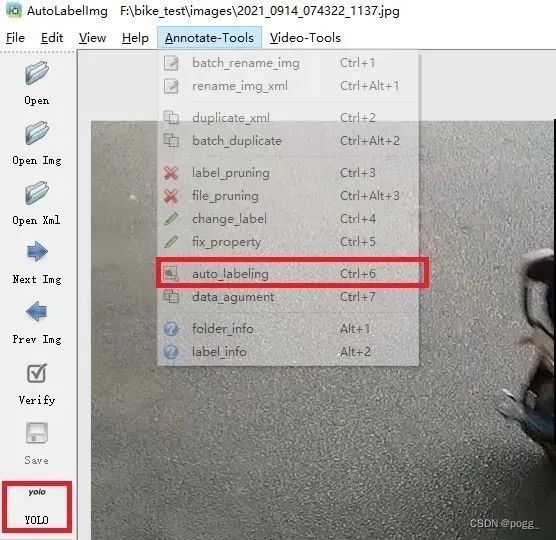 选择标注形式为YOLO格式(YOLOv3、YOLOv4、YOLOv5、YOLOv6、YOLOX),并选择自动标注功能: