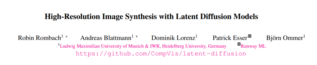 但其实,这个模型的技术来源是发表在 CVPR 2022 中的一篇论文《High-Resolution Image Synthesis with Latent Diffusion Models》,署名作者一共五位,分别来自慕尼黑大学、海德堡大学和 AI 视频剪辑技术创业公司 Runway。