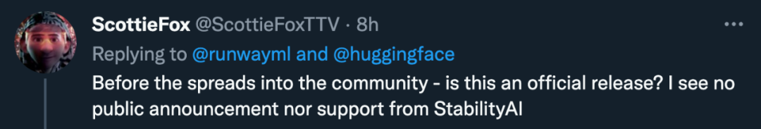 这就让一直以为 Stability AI 是 Stable Diffusion 所有者的网友看不懂了:「这是官方发布吗?我怎么在 Stability AI 的官方渠道没有看到任何公开声明呢?」