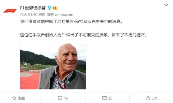 【红牛联合创始人马特希茨去世,享年78岁】10月22日,能量饮料红牛(Red Bull)联合创始人马特希茨(Dietrich Mateschitz)因病去世,享年78岁。1984年,马特希茨与泰国企业家许书标创立红牛公司。全球富豪榜显示,马特希茨排名全球第99位,身家151亿美元。(澎湃新闻)