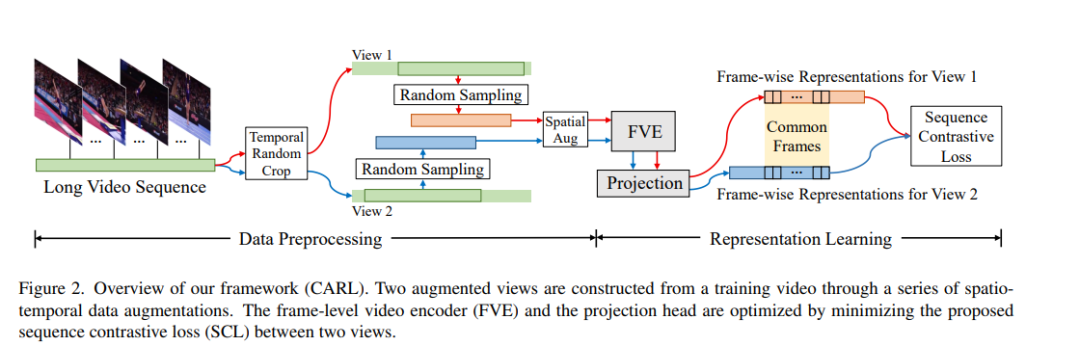 以往关于动作表示学习的研究主要集中在设计各种结构来提取短视频片段的全局表示。相比之下,许多实际应用,如视频对齐,对学习长视频的密集表示有很强的需求。在本文中,我们引入了一种新的对比动作表示学习(CARL)框架,以一种自监督的方式学习基于帧的动作表示,特别是长视频。具体地说,我们介绍了一个简单而有效的视频编码器,它考虑了时空上下文来提取帧方向表示。受自监督学习的最新进展的启发,我们提出了一种新的序列对比损失(SCL),应用于通过一系列时空数据增强获得的两个相关视图。SCL通过最小化两个增广视图的序列相似度与时间戳距离的先验高斯分布之间的KL散度来优化嵌入空间。在FineGym、PennAction和Pouring 数据集上的实验表明,我们的方法在下游细粒度动作分类方面的表现大大超过了以前的先进技术。令人惊讶的是,尽管没有对成对的视频进行训练,我们的方法在视频对齐和细粒度的帧检索任务中也表现出了出色的性能。代码和模型可以在https://github.com/minghchen/CARL_code上找到。