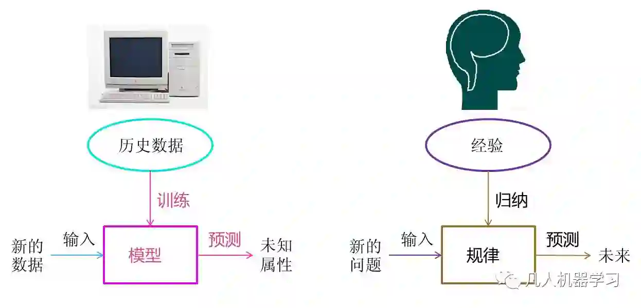让我们把机器学习的过程与人类对历史经验归纳的过程做个比对。