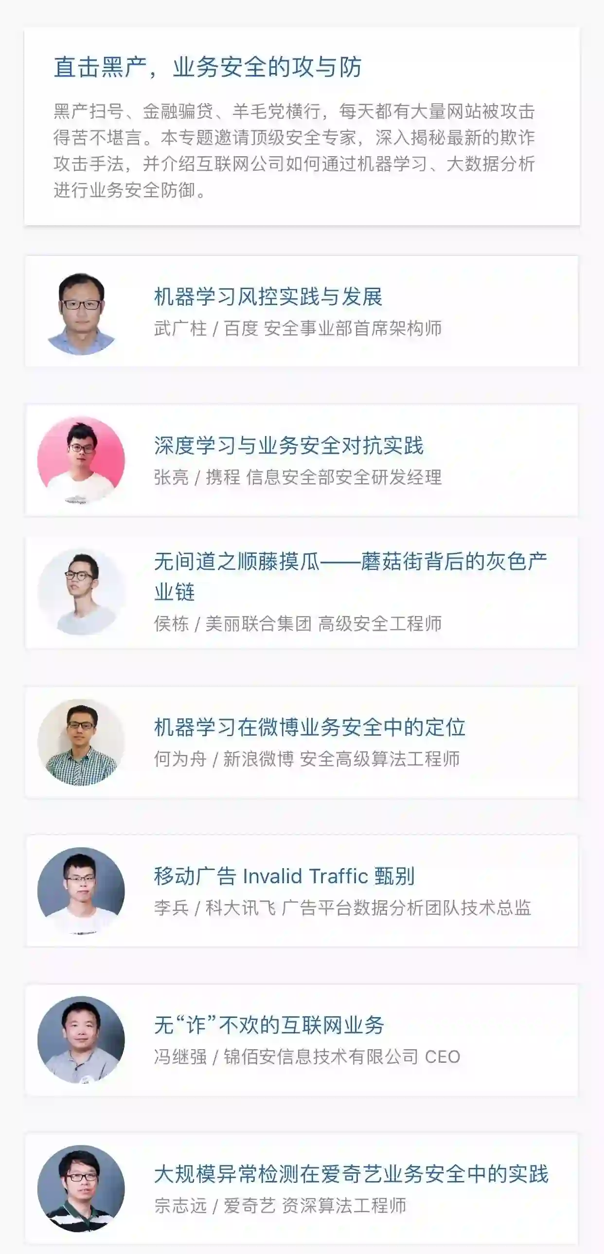 也就是在北京站结束不久,Wanna Cry 病毒席卷全球,将业务安全这个话题推到风口浪尖,面对千亿级的盗号、羊毛党、水军、骗贷等黑产攻击,我们何去何从?本届 QCon 大会自然不能缺少抗击黑产等话题。