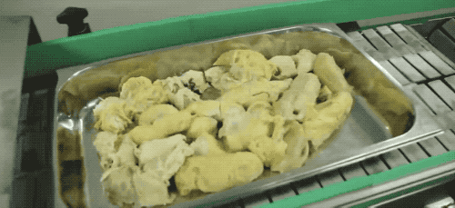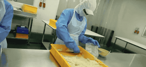 要对新鲜果肉进行常用的冷冻处理 —— 冷冻干燥,就是将榴莲果肉冷冻后进行真空处理,再把里面的水分升华掉,这样就能保持果肉原有的风味。