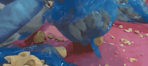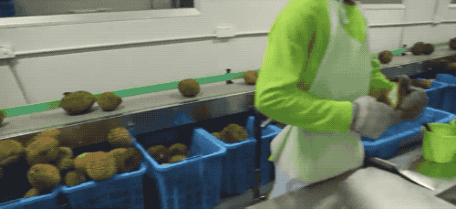 出于保持果肉品相良好的目的,但由于技术限制,外加东南亚劳动力成本也不高,所以我们吃的芒果干、榴莲干基本大都还是人工切削果肉的。是工人们一个个的手起刀落,剔去果核,削除边边,留下了最精华的果肉。
